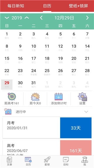 4、进入日历页面,即可自行添加倒数日
