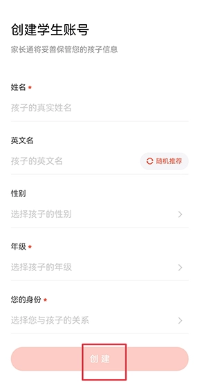3、创建新账号,将孩子信息完善后,点击创建;