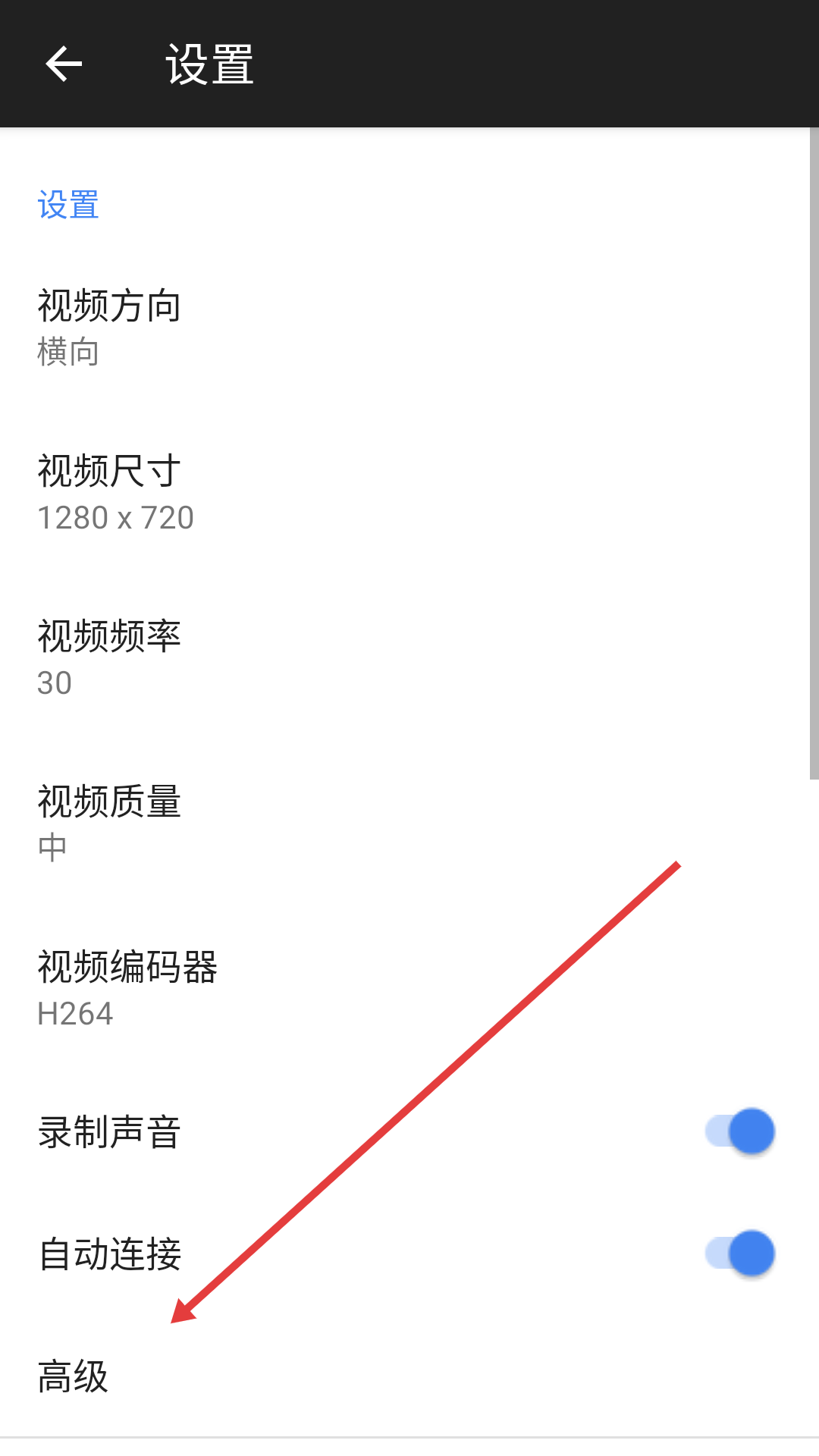 2、在设置界面点击【高级】,进入高级设置界面。