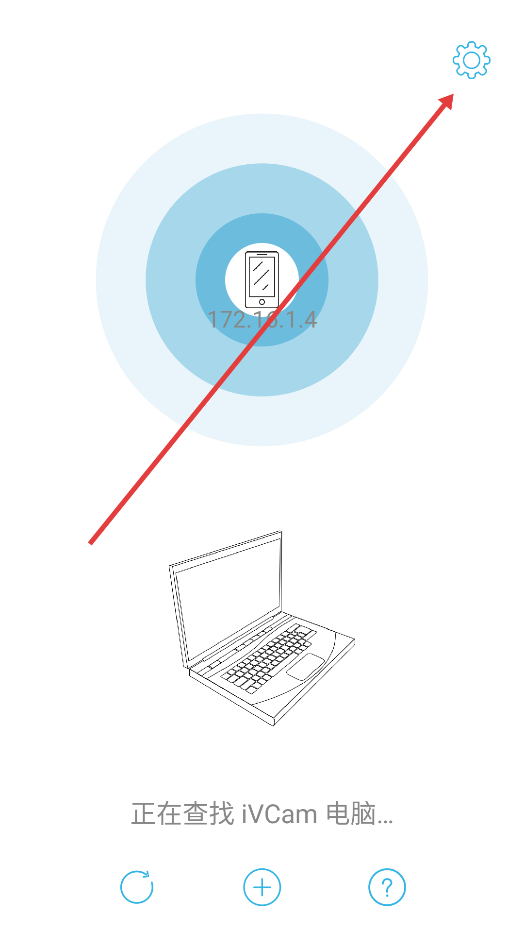 1、在iVCam界面点击右上角设置图标,进入设置界面。