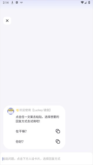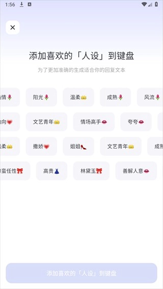 luckey键盘是一款实用的键盘聊天工具,用户能添加各类心仪人设,像阳光、温柔、幽默等风格都可选择,它会提供适配的聊天话术,助力应对多样聊天场景;软件兼容性出色,适配不同机型,让你和他人的聊天体验更愉悦,还能带来趣味十足的沟通感受。