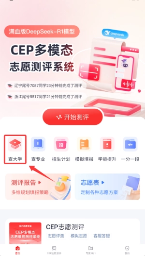 登录应用后,在首页找到并点击“查大学”功能入口,即可进入高校数据库页面。