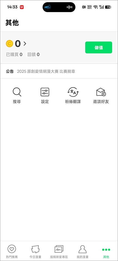 1、打开Webtoon软件,点击右下角的其他,然后点击中间的粉丝翻译