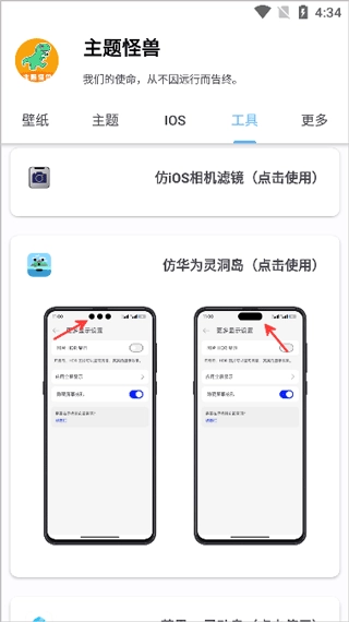 1、首先打开主题怪兽,在首页能看到有不少适配不同手机型号的仿ios主题可供使用;