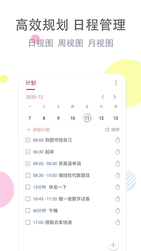 2、清单自习室月历视图每日计划日程管理备考时间作息表一个页面即可总览。