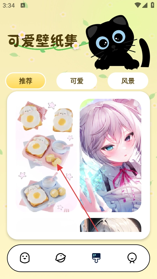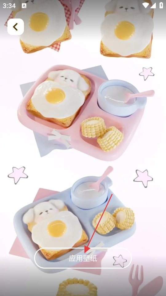 3、在壁纸界面,选择心仪的壁纸如可爱风格的壁纸,可进入该壁纸的详情界面。