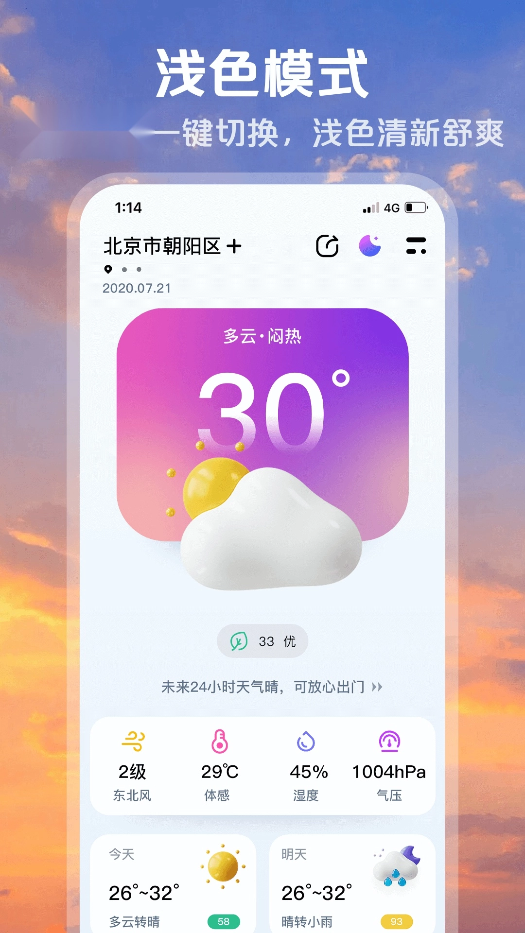 超准天气预报是一款非常实用的天气查询软件,每日为用户推送精准的气象信息,用户能够依据当日的温度和风力情况,合理规划当天的穿着搭配。该软件支持最长15天的天气趋势预测,并且了美观的桌面小组件,用户可以根据个人喜好自由打造个性化的桌面显示效果。