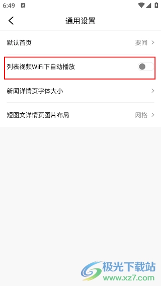 4、然后在打开的新窗口中,找到“列表视频WiFi下自动播放”选项,并将其右侧的开关按钮关闭即可。