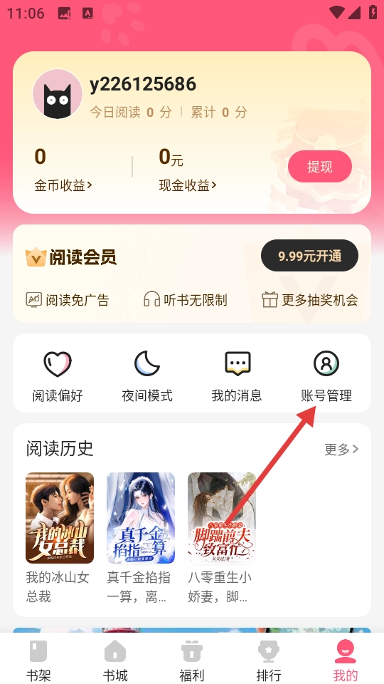 1、进入“我的”页面后,找到并点击【账号管理】选项,即可进入账号管理页面。