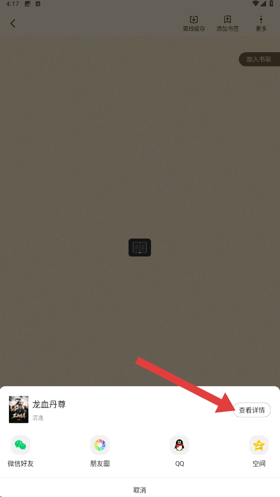 3、在更多功能里点击【查看详情】,进入图书详情页呀。