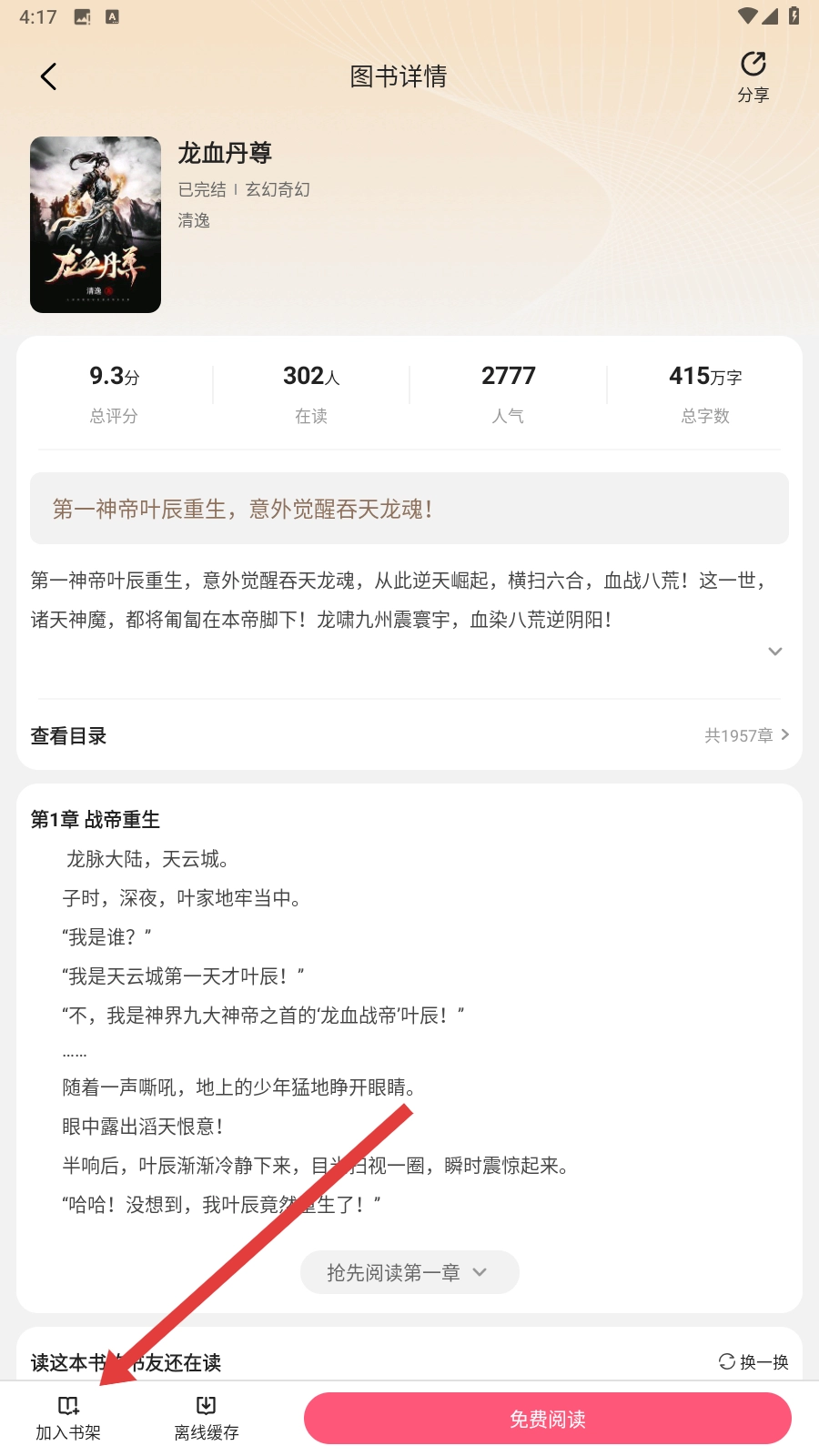 4、在图书详情页点击【加入书架】,就能把小说收藏起来,方便后续阅读啦。