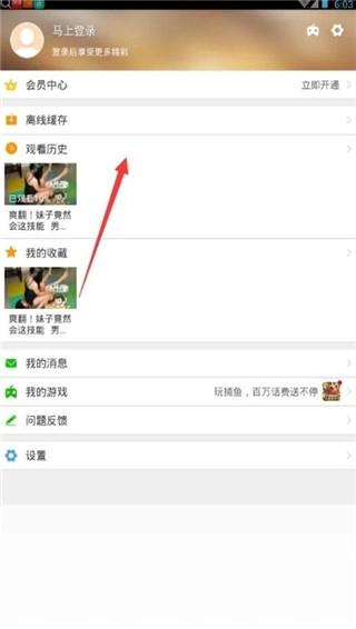 2、在打开的“我的”菜单中,我们就能找到以前的观看历史,点击此选项进入就能找到所有的看片记录了,如下图所示的操作方法!