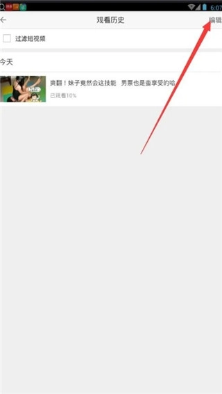 4、如果想删除历史记录,可以点击一下图上的“编辑”选项,这样就能进行视频历史的管理操作了!