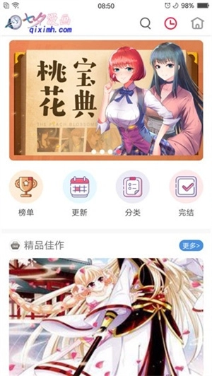 第一步,打开七夕漫画,找到心仪的漫画作品,点击进入后会看到顶部导航栏中的【首页】、【更新】、【排行】、【分类】以及【】选项。点击【】即可将漫画保存到本地。