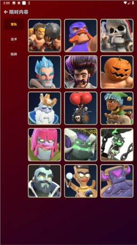 用户在这里可以查看家乡、部落都城全部兵种、法术、建筑、英雄等详细升级数据,各等级属性、花费都一目了然。