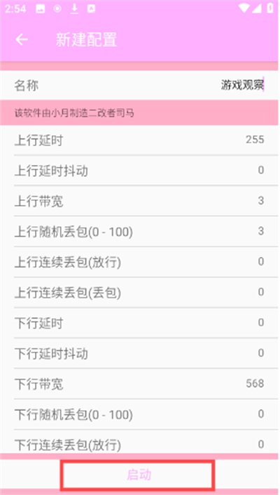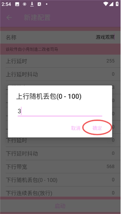 设置网络参数:打开应用后,在对应界面中输入需要模拟的网络参数,例如上行带宽、随机丢包率等。