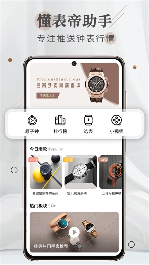 汇聚各大知名品牌腕表信息,分类清晰,满足不同用户的选表需求。