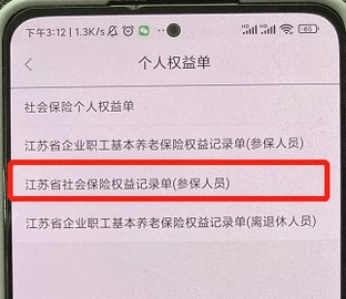 3.选择“江苏省社会保险权益记录单(参保人员)”。